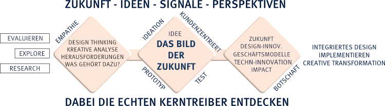 DESIGN ACADE befähigt Unternehmen, auf die Veränderungsdynamiken nicht nur zu reagieren, sondern den Wandel vorausschauend zu gestalten und spezifische Lösungen für Ihre Herausforderungen von morgen zu entwickeln. Auf der Grundlage unserer intersisziplinären Expertise sowie wegweisende Foresight-Methode entwickeln wir zukunftsweisende Lösungen für Ihr Unternehmen.