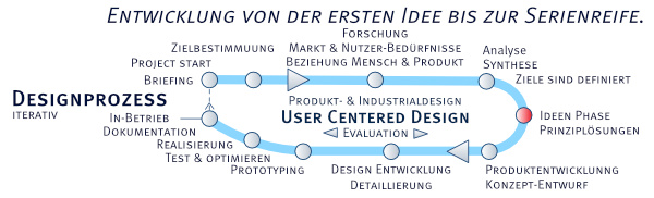 Alles beginnt mit der Analyse, dann mit der Idee und Skizze bis zum Prototypen. Aus der Idee und alternativen Entwürfen entsteht im Team die nächste Produkt-Generation.