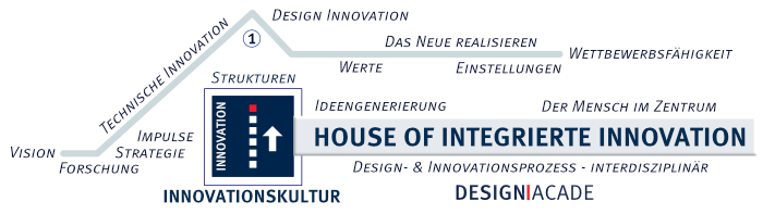 Unser Design beinhaltet ‚Integrierte Innovation‘ dies bezieht sich auf einen interdisziplinären Ansatz, bei dem Wirtschaft, Wissenschaft, Technologien, Design 2.0 und Gesellschaft einbezogen werden – für die Anforderungen der Zukunft.